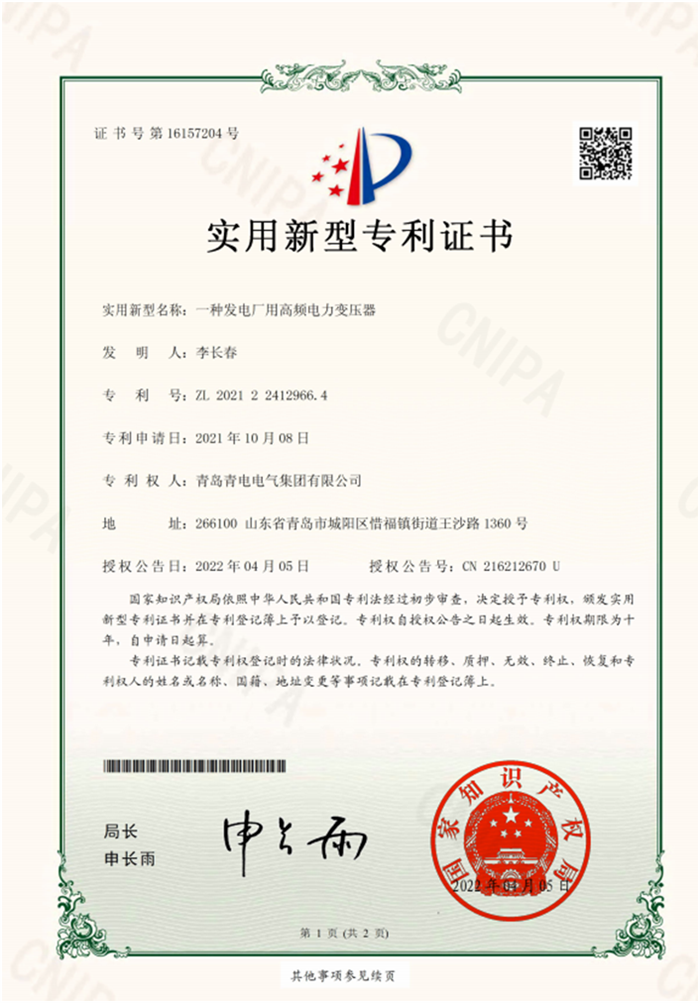 一種發(fā)電廠用高頻電力變壓器